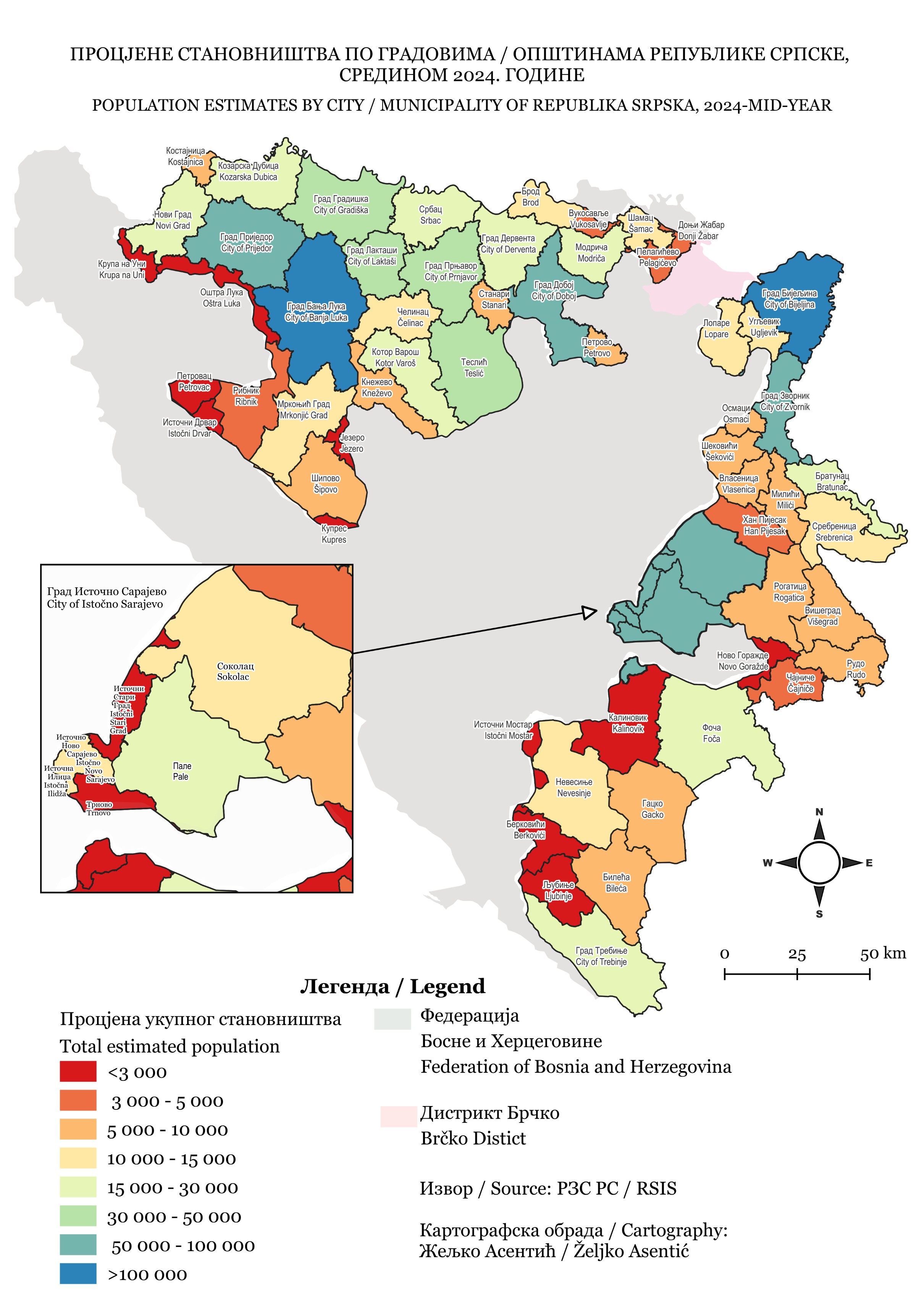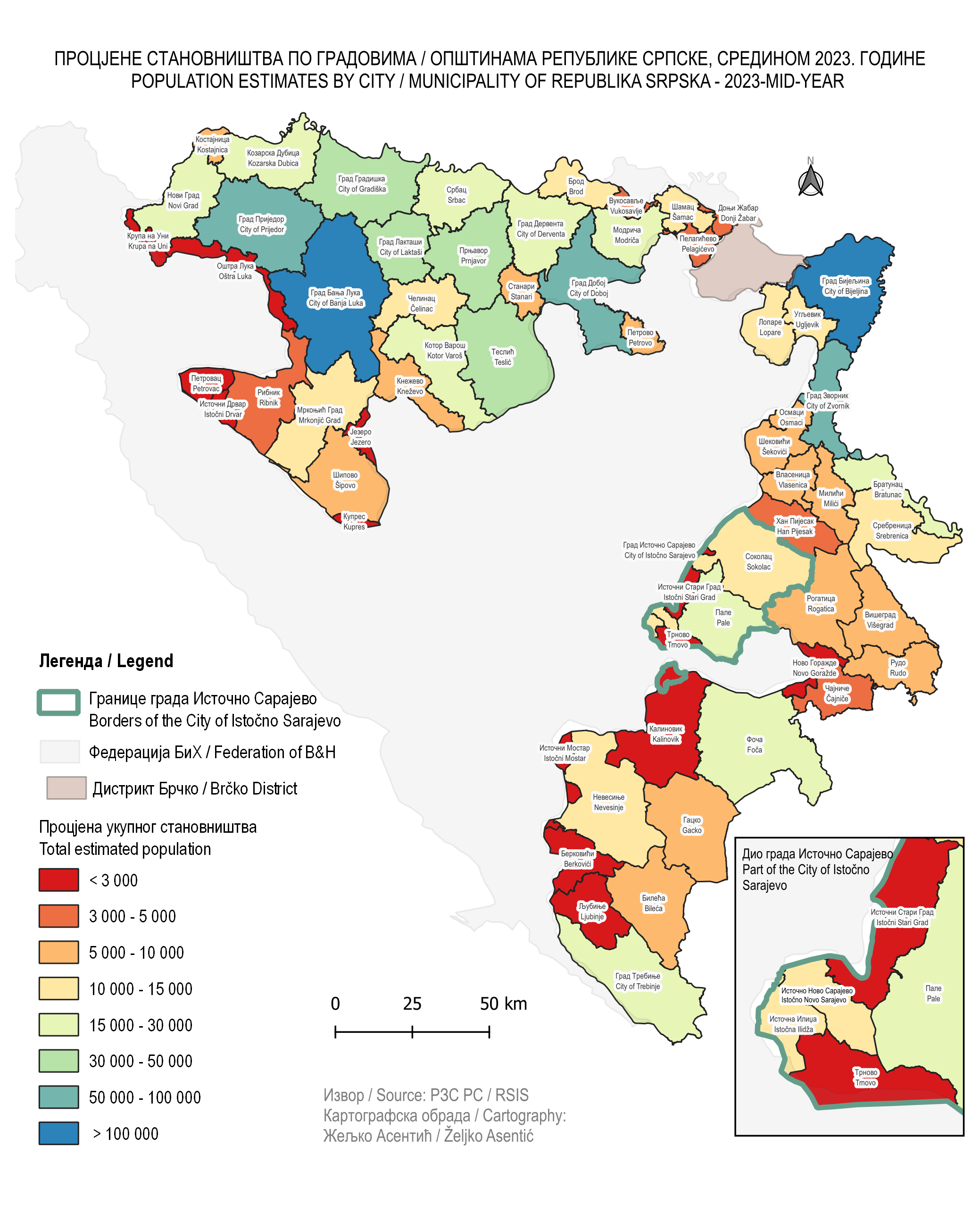 Nakon objavljenih rezultata Popisa stanovništva, domaćinstava i stanova u Republici Srpskoj 2013. godine, Republički zavod za statistiku izradio je procjenu broja stanovnika od 2013. do 2016. godine. Procjena broja stanovnika za period 2017-2023. godine, takođe je zasnovana na rezultatima dobijenim iz Popisa 2013. godine. Procjena broja stanovnika objavljuje se po pojedinačnim godinama starosti, grupama starosti i polu na teritorijalnom nivou jedinica lokalne samouprave ( gradova/opština).
