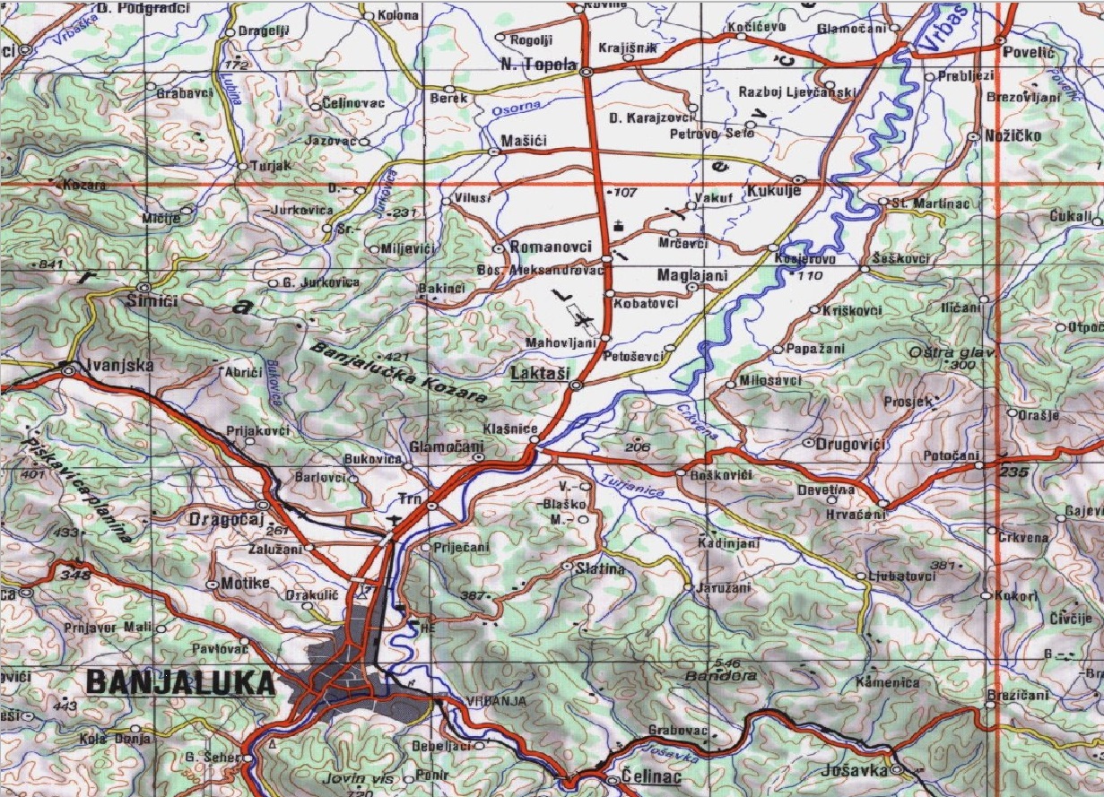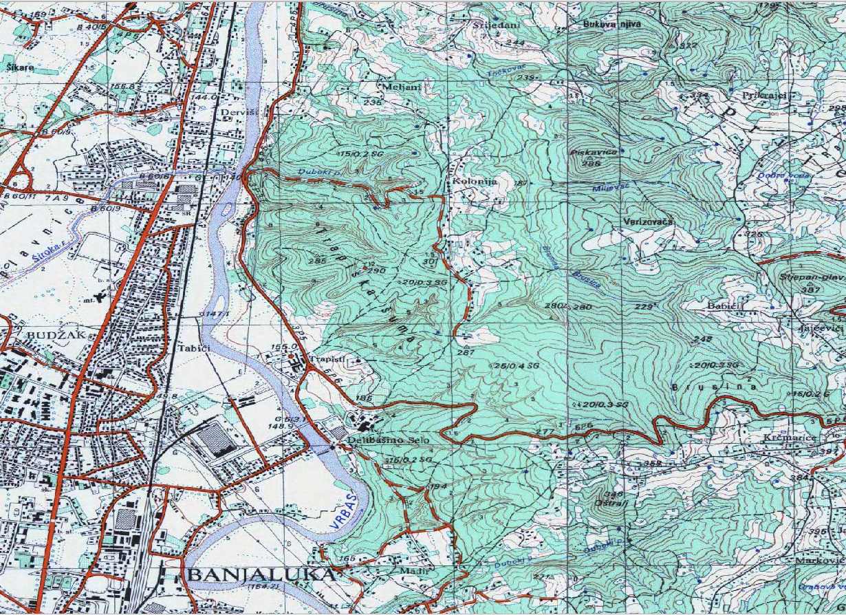 Topografska karta u razmjeri 1:25 000 sadrži pregled saobraćajnica, orografije i hidrografije prikazanih za datu razmjeru. Na listu karte je prikaza teritorija 07'30'' x 07'30'' površine oko 140 kilometara kvadratnih. Format lista karte je 50 cm x 70 cm. Karta ili obuhvat se izdaje u digitalnom obliku.