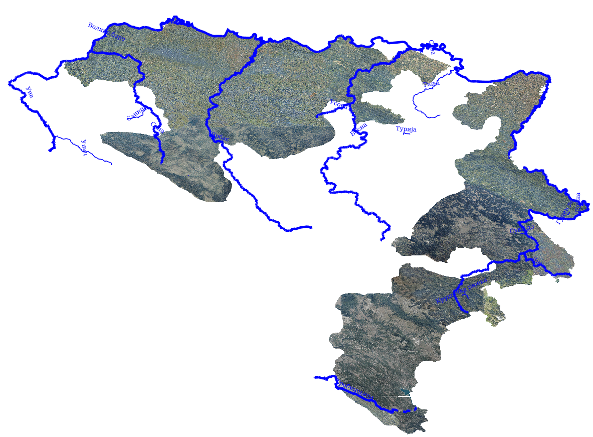Vektorizovana mreža vodotokova sadrži linijski prikaz i nazive vodotokova prikazanih na TK25.
